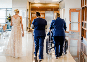 Bradly Orr is currently being treated for cellulitis in his arm. Orr and his fiancée, Amber Walters, were ready to take their vows last Wednesday but postponed their nuptials due to circumstances beyond their control. On the day they were to wed, Walters brought her soon to be husband into the hospital because of the infection. Shortly after arriving at Portneuf, the couple talked about getting married in their hospital room. When the couple suggested it a member of the nursing staff, the Portneuf team kicked into gear with the goal of making their day extra special. Destini Alvarado, CNA, used her lunch break to run home and grab wedding dress and makeup. Jess Kaminski, RN and Kimbriel Alvardo, RN served as the couple’s witnesses. Don Atwood, RN secured flowers that were donated by the Portneuf Auxiliary to make a bouquet and boutonniere. Finally, Dan Ordyna, CEO, came to the hospital in his best suit to perform the wedding in the hospital’s chapel. “The staff made a horrible time in our life into a precious, memorable moment that I will always remember,” said Amber Walters. After first meeting in Shelley, ID, Orr and Walters have been friends for 22 years. They both now live in Pocatello and are looking forward to starting their lives together.