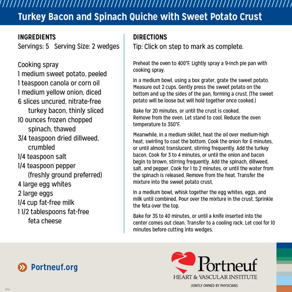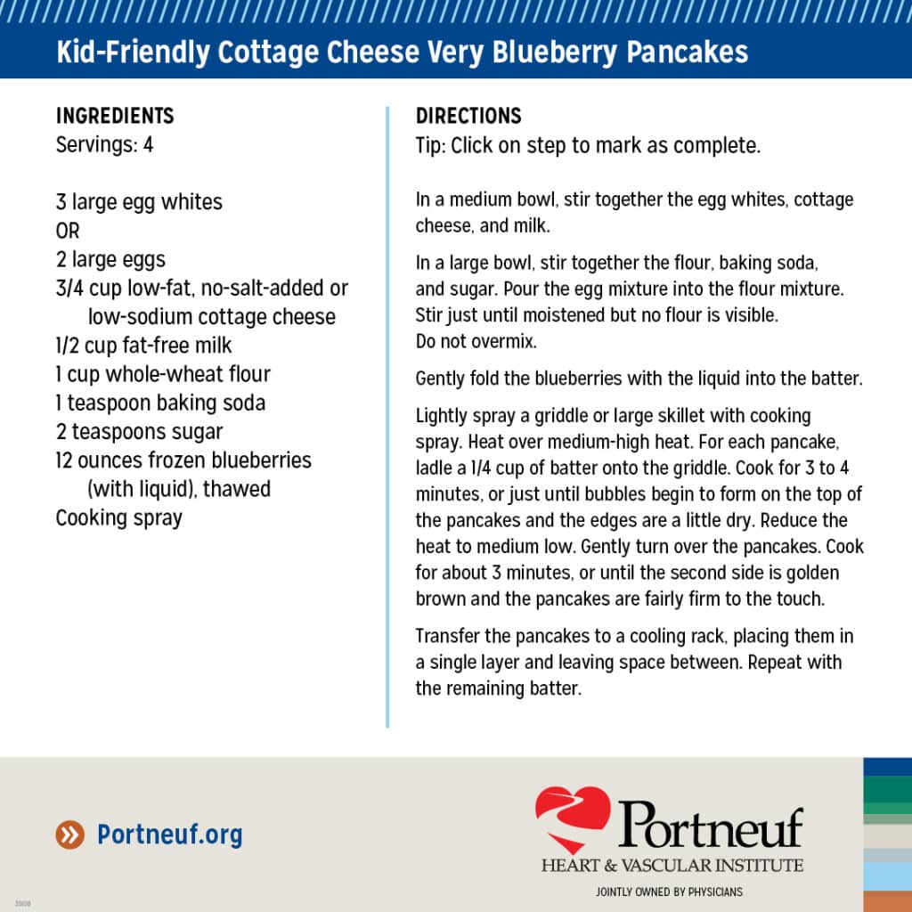 We are sharing healthy recipes every Monday in February! This week’s recipes include turkey bacon and spinach quiche with sweet potato crust and kid-friendly cottage cheese very blueberry pancakes.