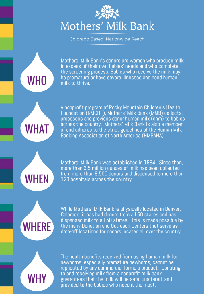 Women interested in giving the gift of human milk may fill out the donation screening form on Mothers’ Milk Bank website, or call 303-869-1888. For more information on MMB and its efforts to provide milk to babies who need it nationwide, visit milkbankcolorado.org.